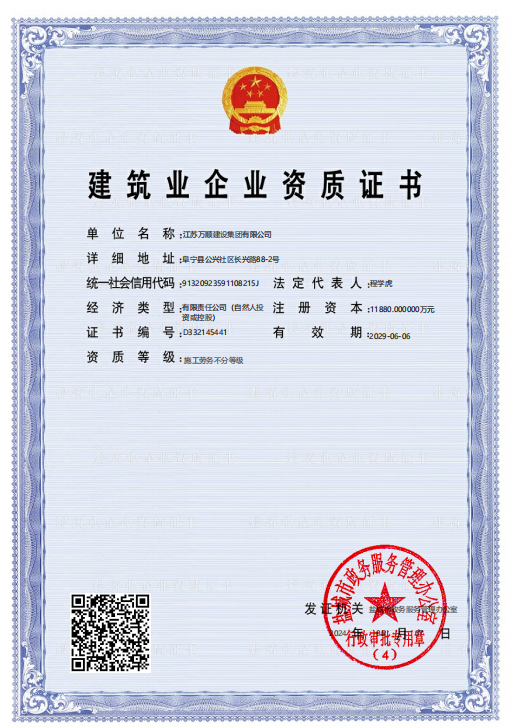 江蘇萬順建設集團于2012年2月經鹽城市阜寧縣工商行政管理局批準設立,目前已形成建筑施工總承包、建材銷售等綜合性、多元化企業(yè),也是一家擁有現(xiàn)代經營管理模式、追求可持續(xù)發(fā)展的企業(yè)。